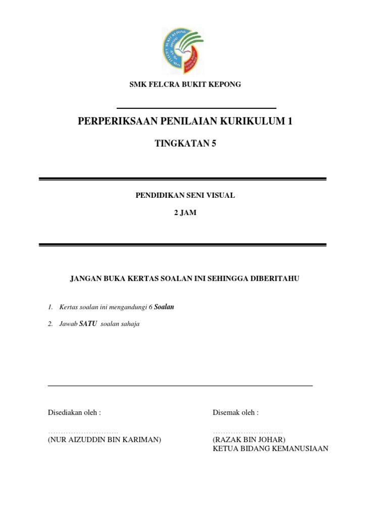 Borang Ujian Lisan Bahasa Inggeris Spm