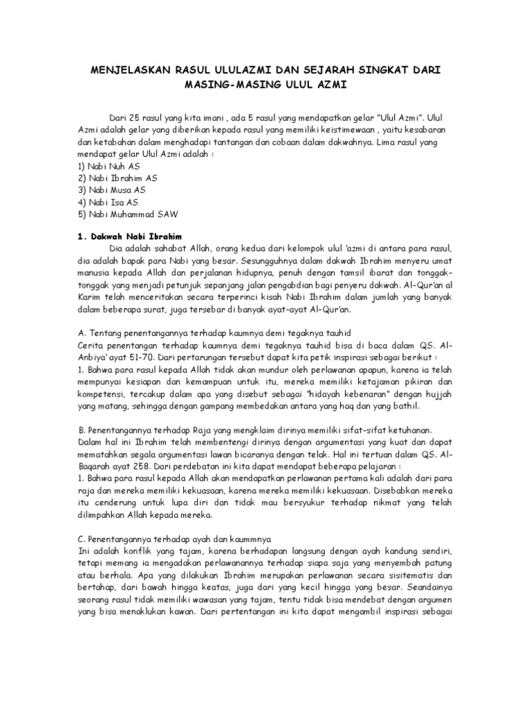 Siapa Rasul Ulul Azmi Tolong No 15 Brainly Co Id
