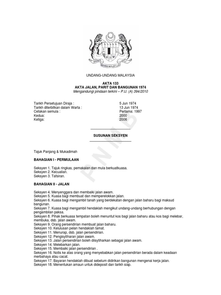 Akta Jalan Parit Dan Bangunan 1974 Akta 133 Hadi Nur
