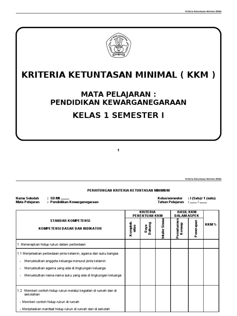 Doc Kriteria Ketuntasan Minimal Kkm Mimi Zega Academia Edu