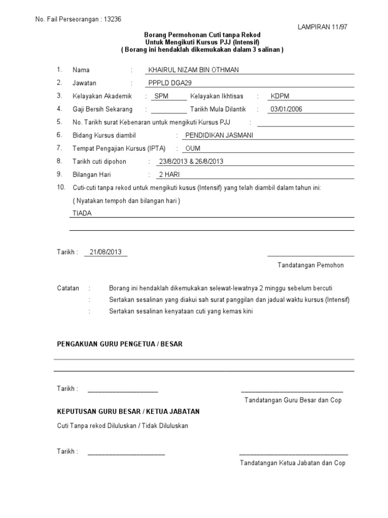 Contoh Surat Cuti Tanpa Rekod Guru Html Contohsoal Net