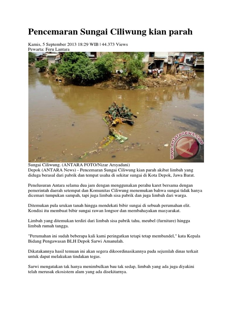 Pdf Pencemaran Sungai Ciliwung Dan Dampak Buruknya Bagi Masyarakat Dki Jakarta