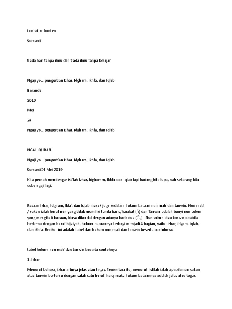 Pengertian Izhar Idgham Iqlab Dan Ikhfa