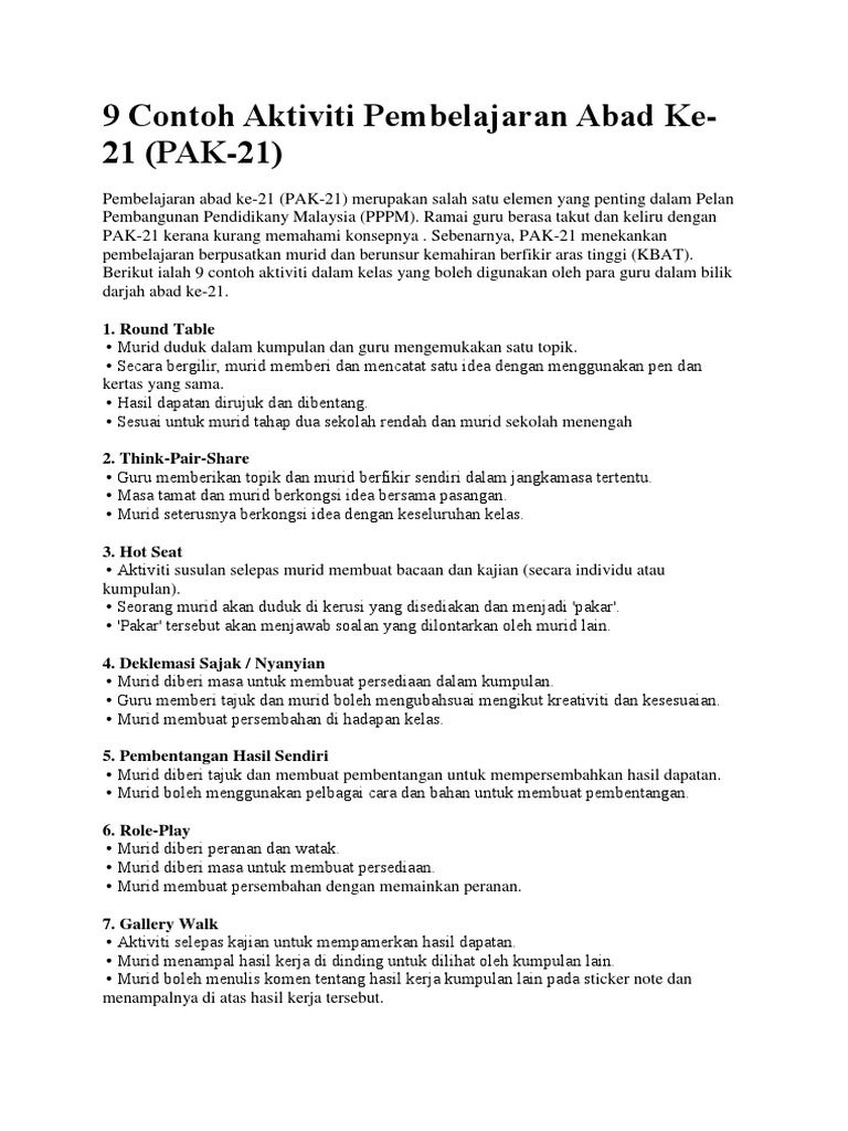 Contoh Aktiviti Aktiviti Pembelajaran Abad Ke 21 Cikgu Share Belajar Pendidikan