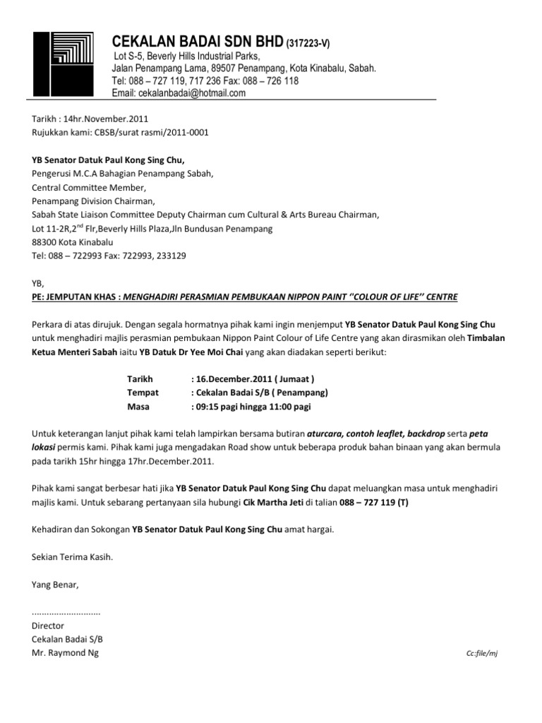Contoh Surat Rasmi Kepada Ketua Menteri Sabah Modif 9
