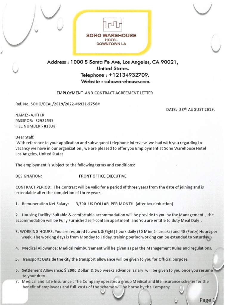 Soho Warehouse Hotel Employment Letter Ajith R Employment Travel Visa