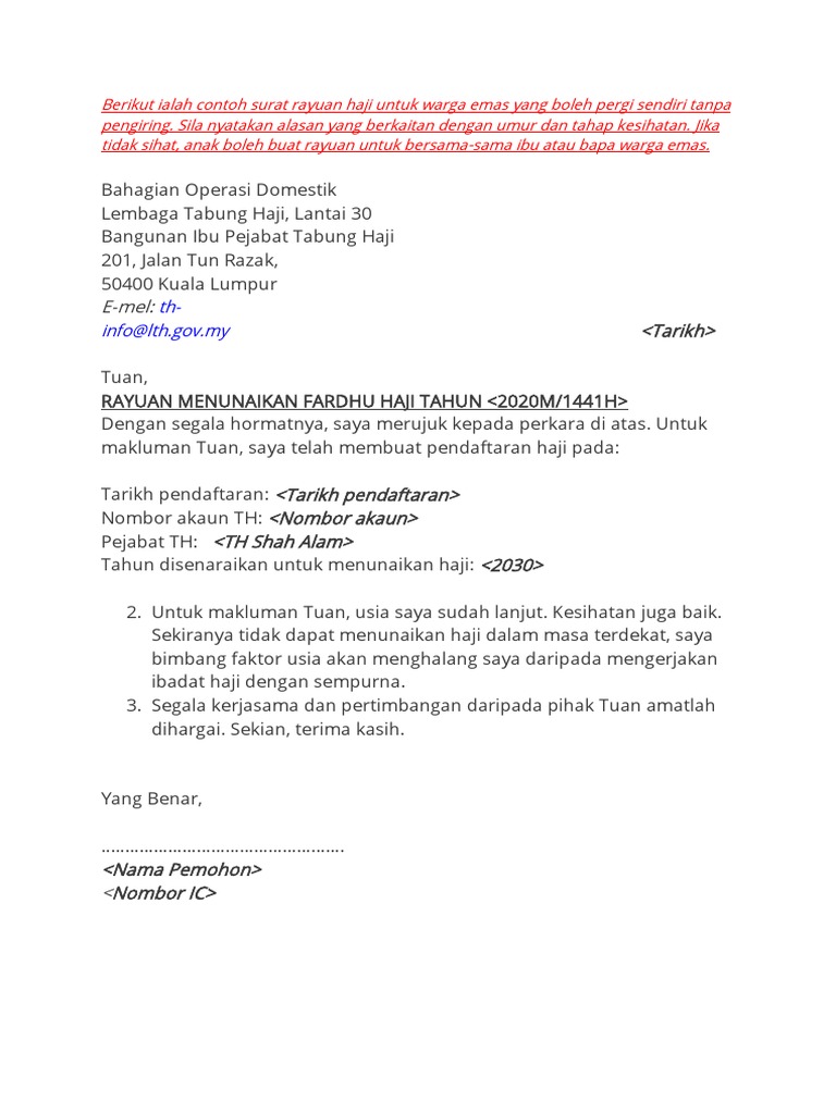 Warga Emas Contoh Surat Rayuan Haji Gudang Surat