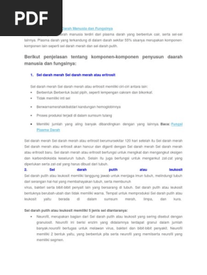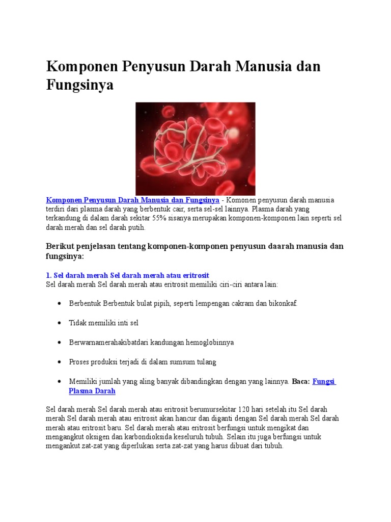 1 A Sebutkan Komponen Penyusun Darah Dan Sebutkan Pula Fungsi Masing Masingnya
