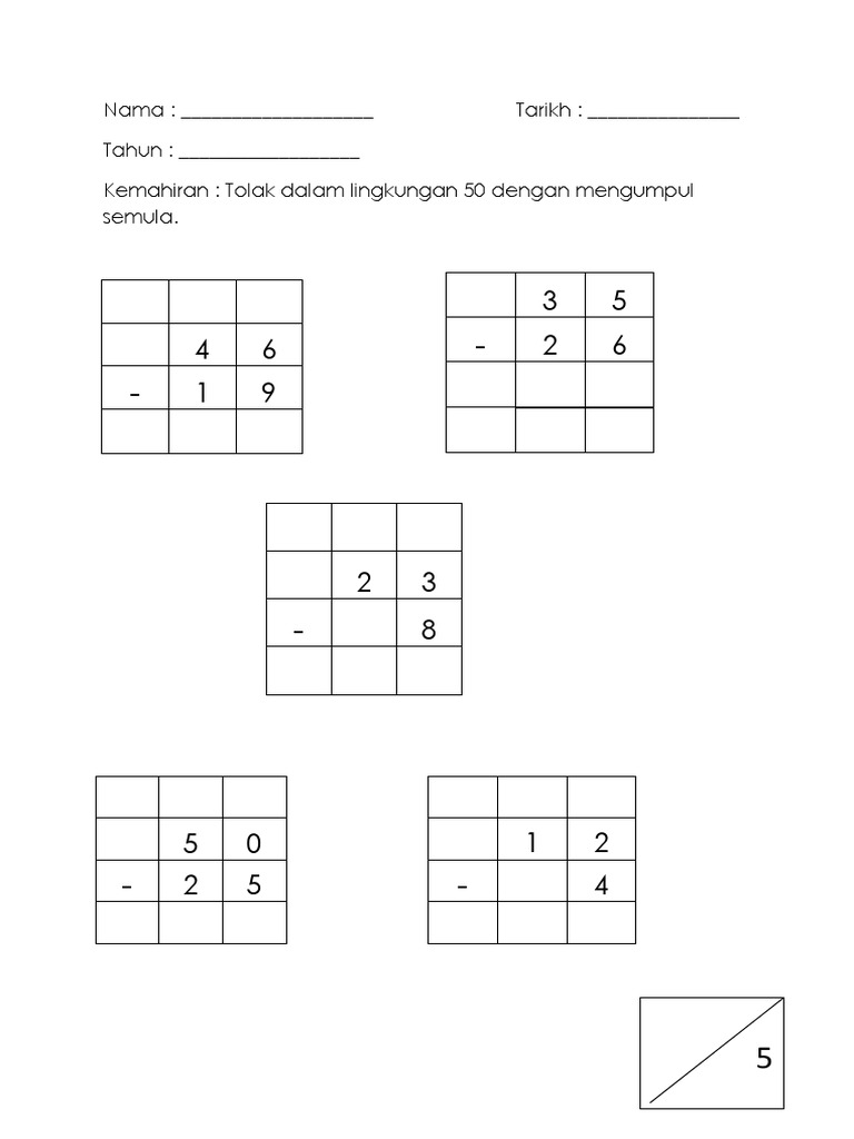 Soalan Matematik Tahun 1 Tolak Kunci Ujian