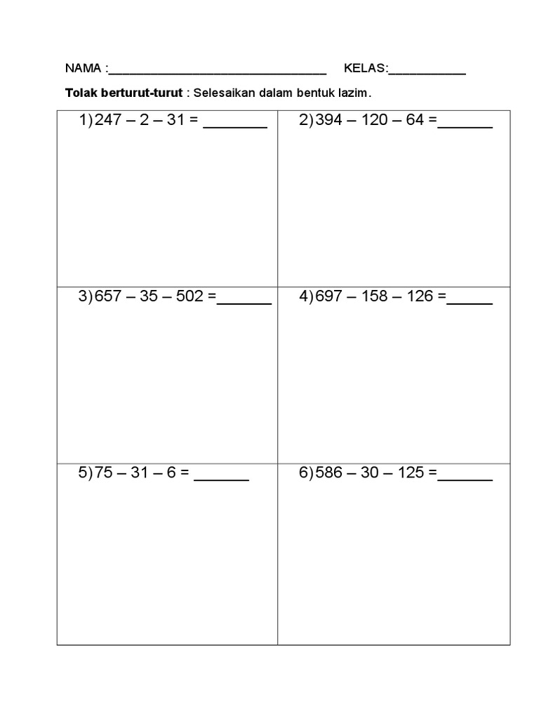 Soalan Matematik Tahun 1 Operasi Tolak Helowinr