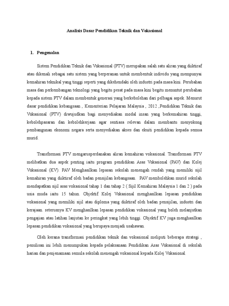Analisis Dasar Pendidikan Teknik Dan Vokasional