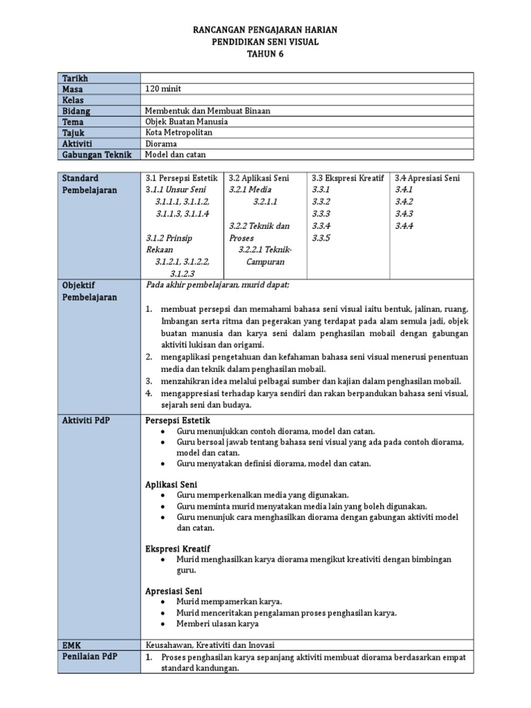 Rancangan Pengajaran Harian Psv Kbsr Dalam Bidang Membentuk Dan Membuat Binaan