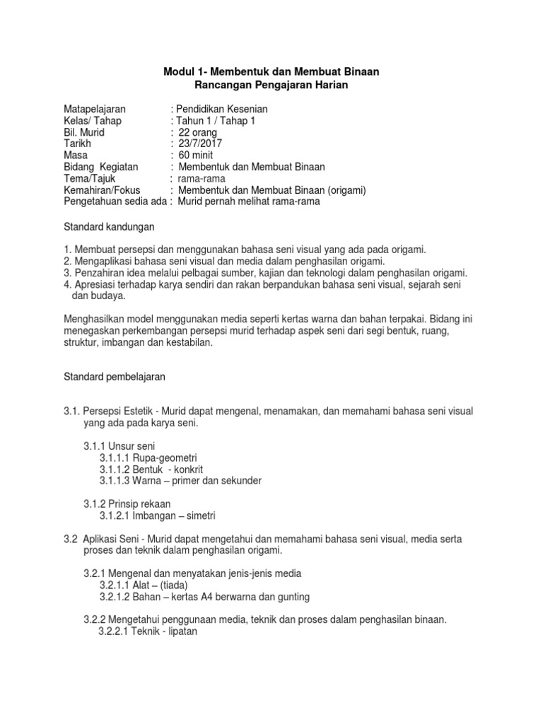Rph Pendidikan Seni Visual Tahun 6 Sumber Pendidikan Rph Psv M6