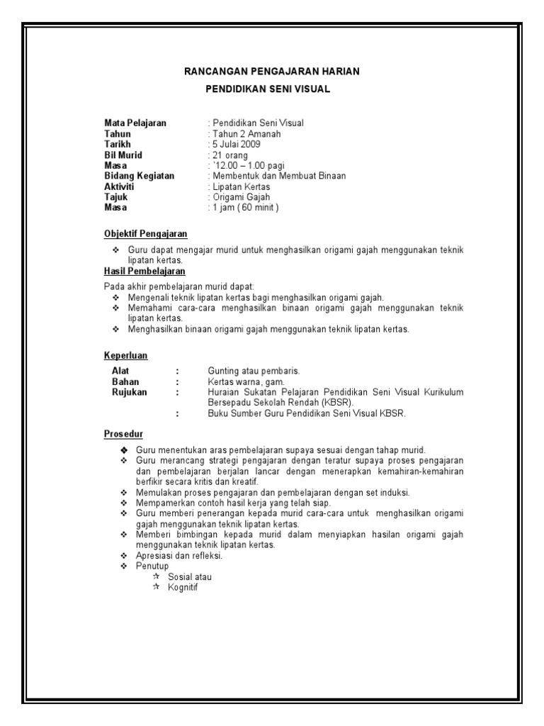 Komponen Seni Visual Pendidikan Seni Kreatif Tahun 2