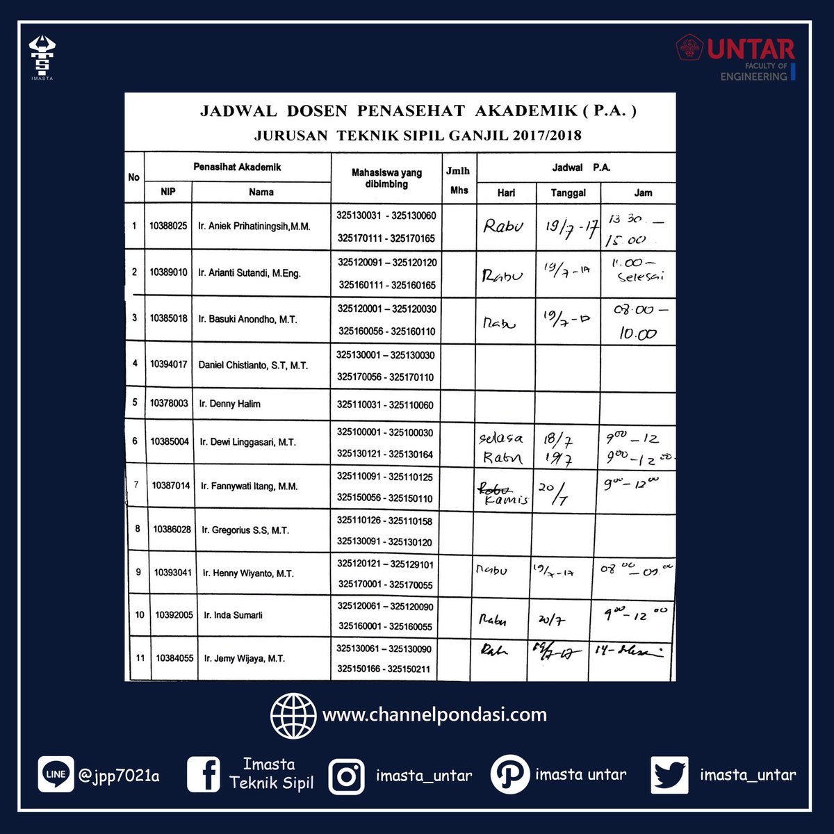 Imasta على تويتر Pengumuman Berikut Adalah Jadwal Dosen Penasehat Akademik P A Jurusan Teknik Sipil Ganjil 2017 2018 Hidup Sipil Imasta Https T Co Wdfnfgbvvx