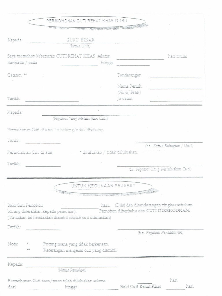 Permohonan Cuti Rehat Khas Kelayakan Cuti Tahun 7 Hari 1 Nama Guru Image Sheet Music Batang