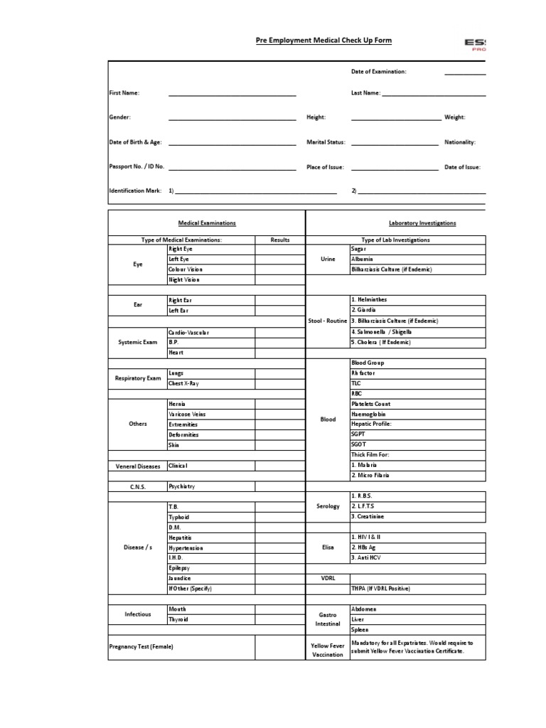 Pre Employment Medical Check Up Form Mauritania Hepatitis C Public Health