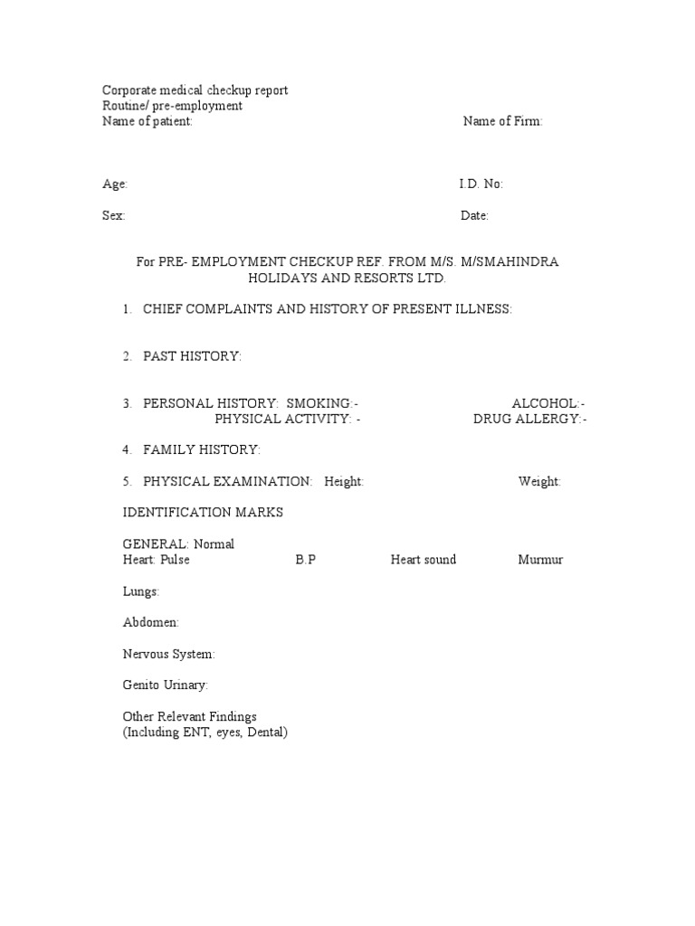 F Hrd Hcm 5 Pre Employment Health Check Up Report Format