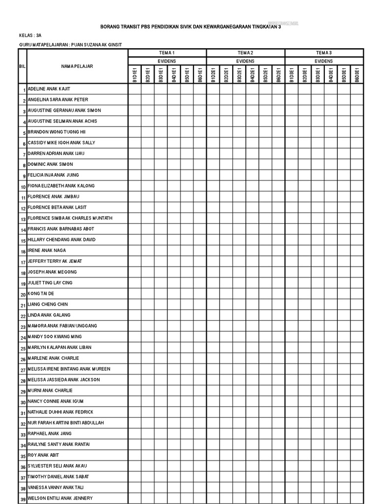 Rekod Transit Berkelompok Pbs Psk Tingkatan 3 Xls