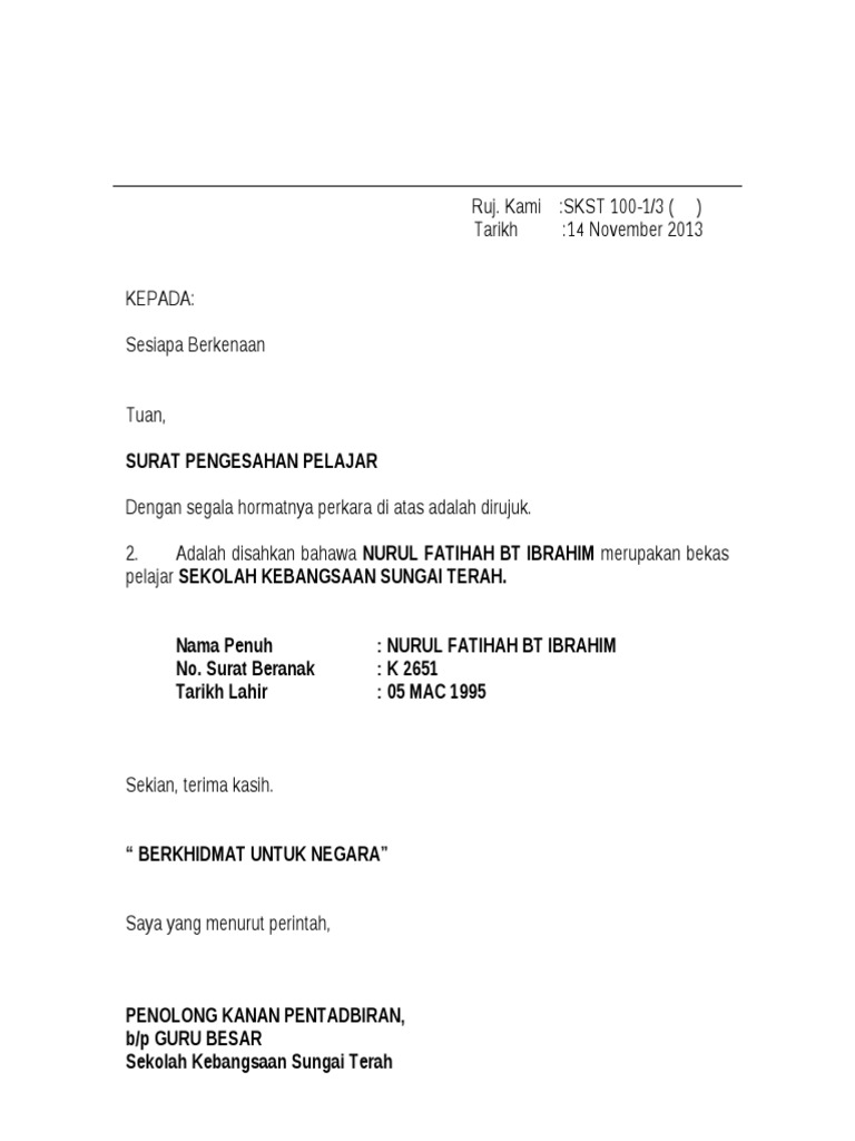 Contoh Surat Rasmi Cuti Bersalin Rasmi B