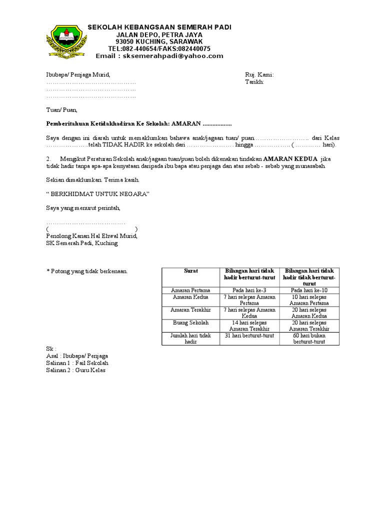 Surat Amaran Tidak Hadir Ke Sekolah Doc