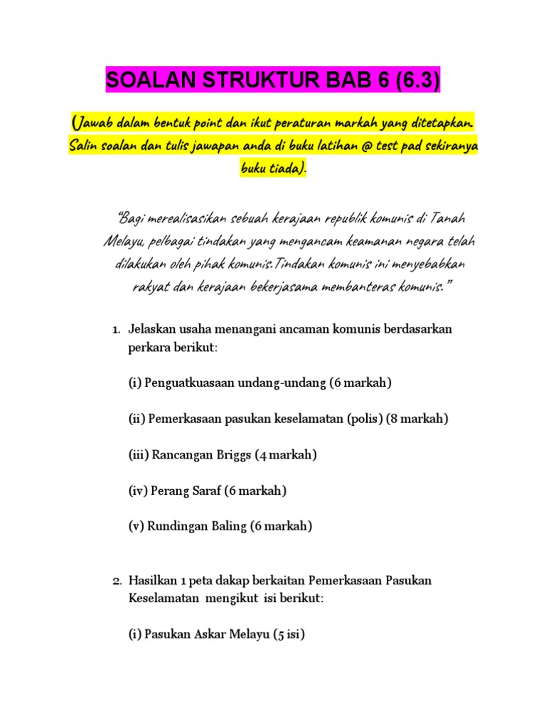Soalan Struktur Bab 6 6 3 Salin Soalan Dan Tulis Jawapan Anda Di Buku Latihan Test Pad Sekiranya Buku Tiada
