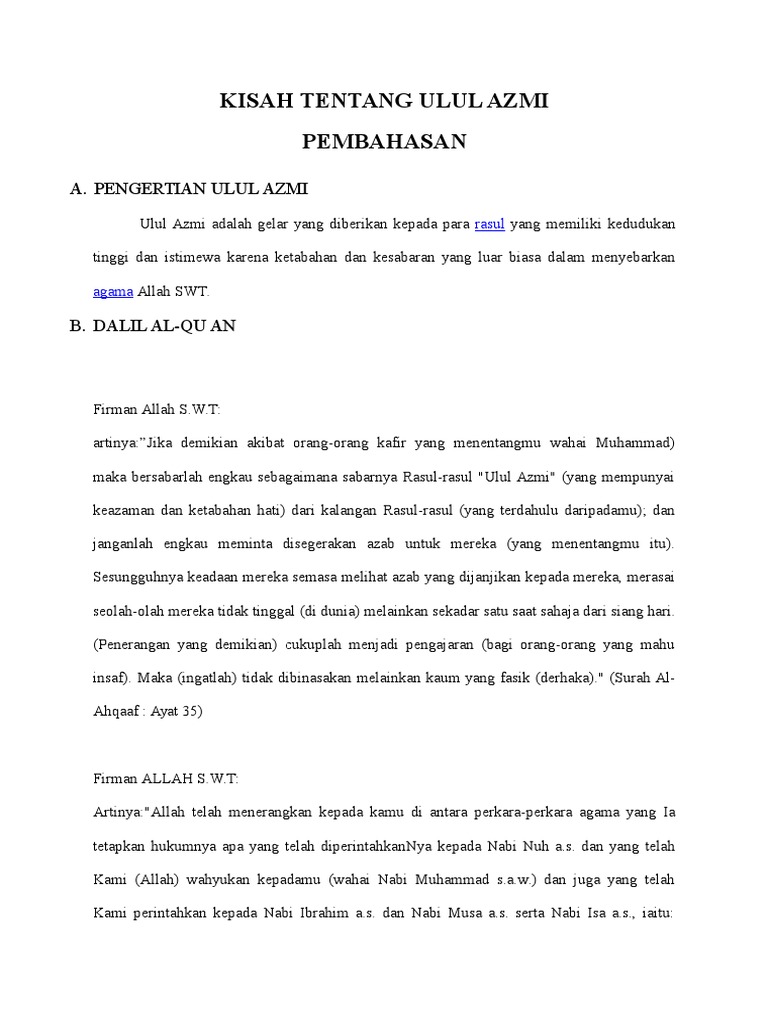 Makalah Akidah Ahlak Tentang Kisah Teladan Rosul Ulul Azmi